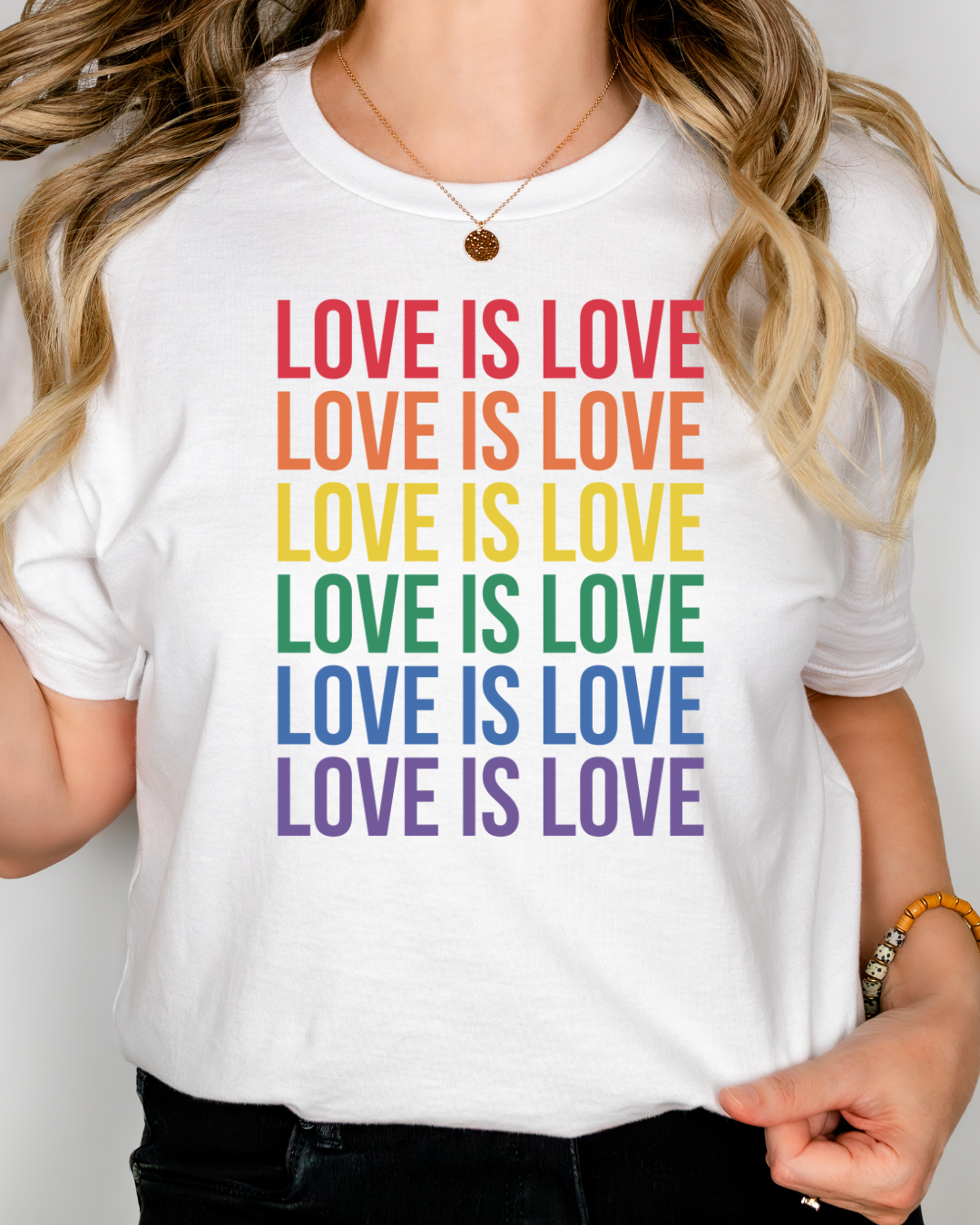 Celebrate equality in full colour with our Love Is Love t-shirt, featuring vibrant rainbow lettering. Bold, inclusive, and designed to stand out, this Pride shirt is a powerful reminder that love is love—no matter who you are or who you love.
